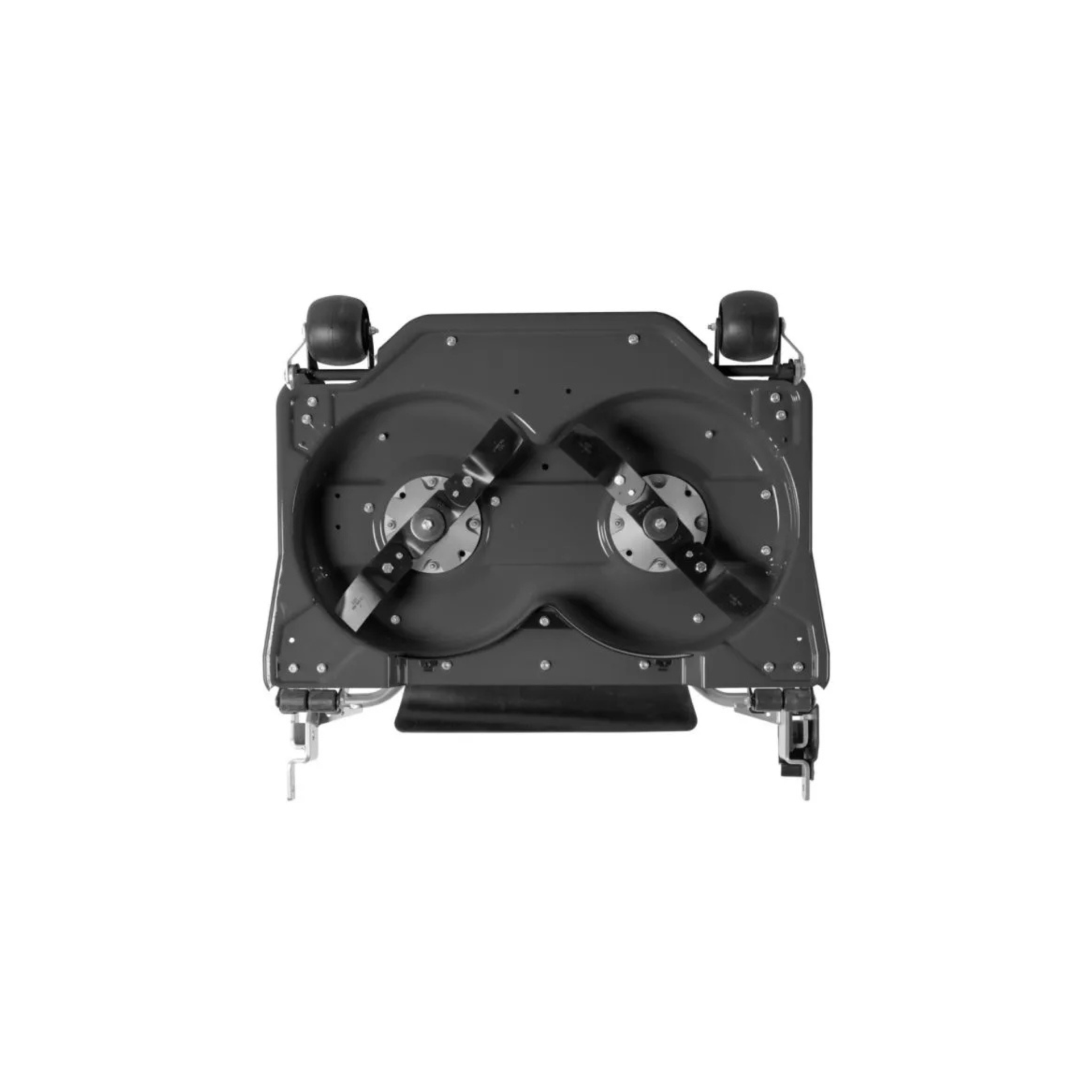 The 85 Combi QuickFlip mower deck, suitable for the Park 300 and 300 M front-mounted mowers, features a cutting width of 85 cm and two synchronized blades with replaceable blades. The mower deck can be used for both mulching and rear discharge. The cutting height is manually adjusted between 25 and 85 mm. The QuickFlip system allows the mower deck to be easily raised using a lever for maintenance and cleaning. The mower deck features guide wheels that guide it safely across the lawn, even on uneven surfaces.
