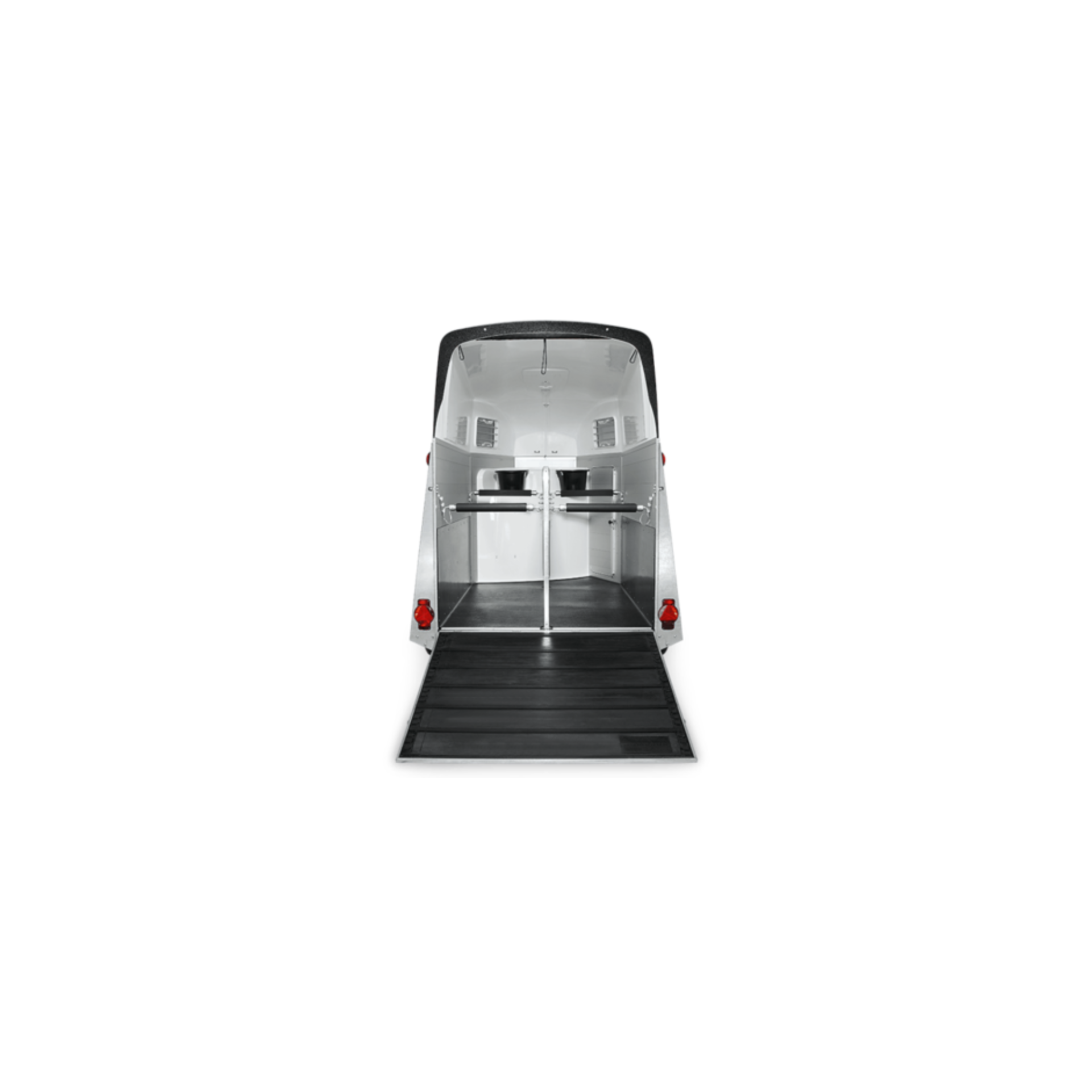 Das robuste Einsteigermodell in der Klasse der Pferdeanhänger für zwei Pferde ist der Equitos Alu Plus, der bereits mit attraktiven Zusatz-Features kommt. Auch sein EquiDrive®-Fahrwerk ist mit Radstoßdämpfern ausgestattet, die Bereifung für 100 km/h geeignet (nur in Deutschland). Der verrottungsfreie Alu-BiComp-Boden und der eingeklebte und versiegelte Gummiboden sowie der serienmäßig vorhandene Seitentrittschutz sorgen für eine lange Lebensdauer des Alu-Anhängers. Die abschließbare Sattelkammer des Equitos Alu Plus ist mit Sattelhalter, Trensenhalter, Spiegel und Netz ausgerüstet. Die Pferde profitieren von den geteilten und höhenverstellbaren Brust- und Heckstangen mit Panikentriegelung, den getönten Ausstellfenstern in der Polyhaube und dem Windschott, das für zugfreie Innenraumbelüftung sorgt. Die verriegelbare Trennwand EquiLock® lässt sich leicht bedienen und sorgt für sicheren Halt auch bei geöffneter Heckklappe.